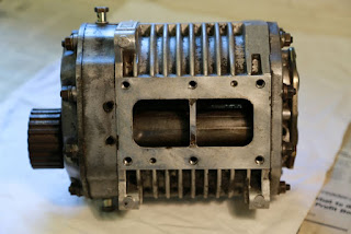The nature of this, largely one off work, is always very time consuming, even to the end. I 've been caught out with a clearance problem on the inlet manifold and some casting issues internally. Despite being test fitted I had not foreseen this problem as the oil return pipe was not fitted until now. Rather than strip totally, you can see that I have wrapped and sealed the whole thing in a bag and then carefully hacksawed, chiselled and filed the new corner shape. We also noted a casting flaw that would allow air leakage, but that is remedied with a sealing washer beneath a bolt.